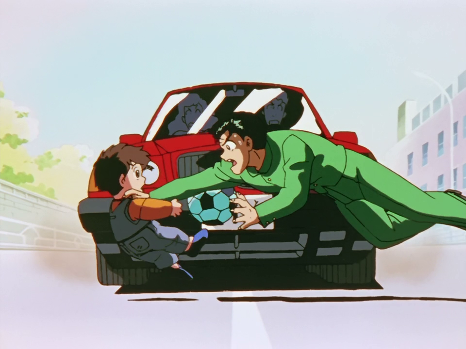 into the street in front of an oncoming car, Yusuke shoves him out of